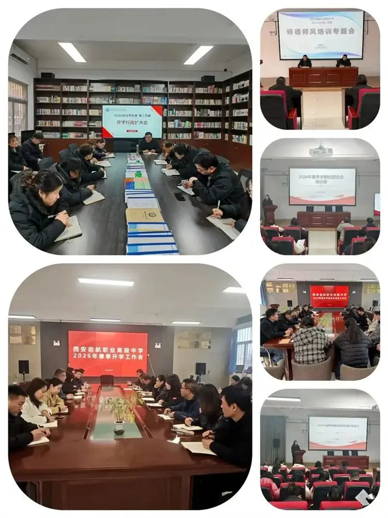 为扎实做好春季开学筹备,统筹推进新学期各项工作,西安启航职业高级中学于3月1日至3月3日召开系列开学工作会议,全面传达上级精神、细化工作部署、压实责任分工,确保新学期平稳开局、高效运行。