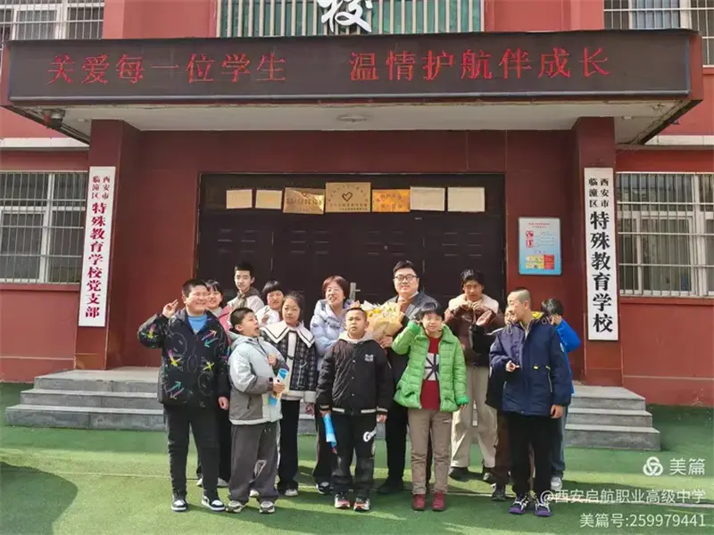 团委刘昀老师代表学校前往临潼区特殊学校,看望慰问特殊儿童。多年来我校为孩子们送去鲜花、生活用品、玩具、衣物等温暖与关怀。我校师生与特殊学校的儿童们亲切交流、暖心互动,用陪伴传递温情,用爱心守护成长,以实际行动践行雷锋精神,彰显教育者的责任与温度,让特殊儿童感受到来自启航的关爱与温暖。