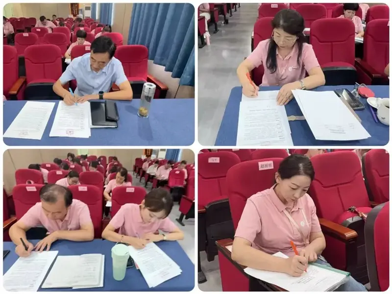在校长闫天成的带领下全体教师郑重在承诺书上签字,时刻牢记职业道德规范,坚持做到正人先正己,身教重于言教,树立良好师德形象,用对教育事业的满腔热爱,坚守师德规范,履行师德承诺,践行教育家精神。